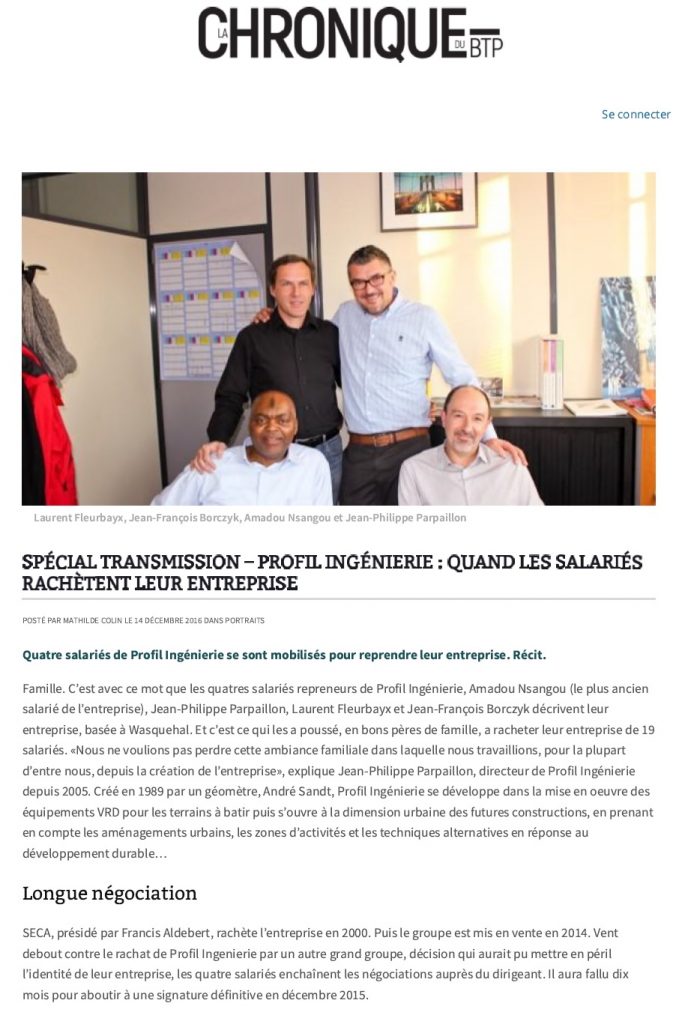 Actualités Entreprise Article du MONITEUR du 04/10/2019 Article de LA CHRONIQUE DU BTP du 14/12/2016 Actualités Projets Linkedin Youtube