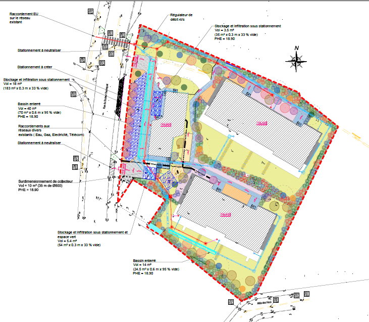 – Gestion des eaux de la pluie de 30 ans avec une partie en rejet et une partie en infiltration.