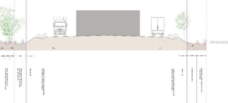 La topographie très marquée du secteur implique un passage de Canal de section en remblai au Sud à une section en déblai au Nord impliquant un travail fin sur l’altimétrie du projet et de fait sur son insertion paysagère. Une des particularités du projet est la prise en compte d’un volume considérable de 400 000 m3 de remblais issus du CSNE. D’un point de vue paysager, le positionnement du projet sur un point haut offre ainsi de nombreuses perspectives visuelles depuis l’extérieur impliquant notamment un travail d’insertion notamment des talus installés en frange Sud. Le végétal prendra une place importante sur le projet ceci afin de lui donner plusieurs fonctionnalités : paysagères / écologiques et hydrauliques avec la création d’ouvrages de gestion des eaux pluviales principalement superficiels : noues / bassins / fossés dimensionnés pour gérer le volume d’une pluie centennale.