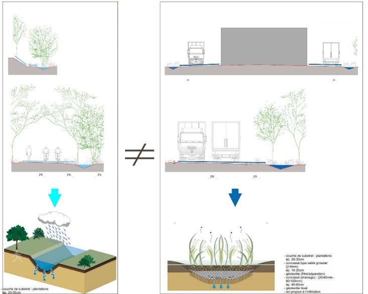 – Traitement paysager et gestion des eaux pluviales ;